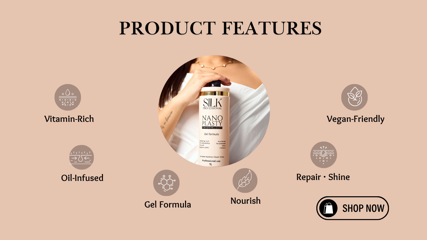 Infused with powerful botanical extracts, essential oils, and enriching vitamins, this vegan-friendly formula smooths, repairs, and restores hair to its healthiest state—without the use of harsh chemicals or animal-derived ingredients. Designed for professionals, it delivers salon-quality results with unmatched ease and efficiency. It’s not just nanoplasty—it’s the future of haircare.